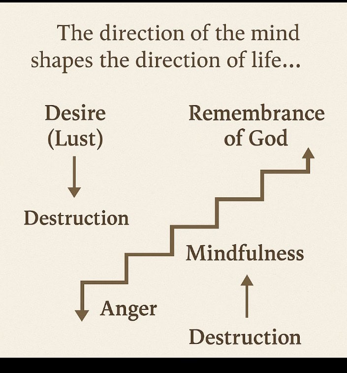 (ध्यान ➡️ आसक्ति ➡️ कामना ➡️ क्रोध ➡️ पतन)